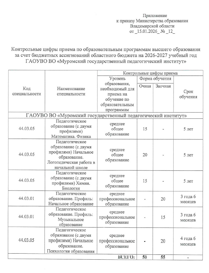 - ПРАВИЛА ПРИЁМА на обучение по образовательным программам высшего образования – программам бакалавриата в ГАОУВО ВО «Муромский государственный педагогический институт» в 2026 году
